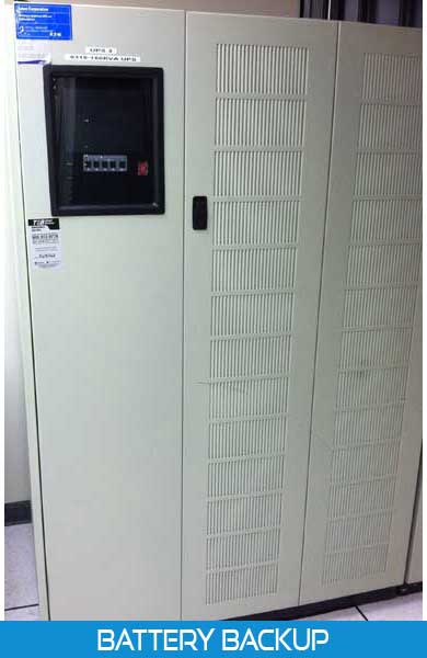 The data center utilizes four high capacity battery backup units with a combined capacity of 490KVA.