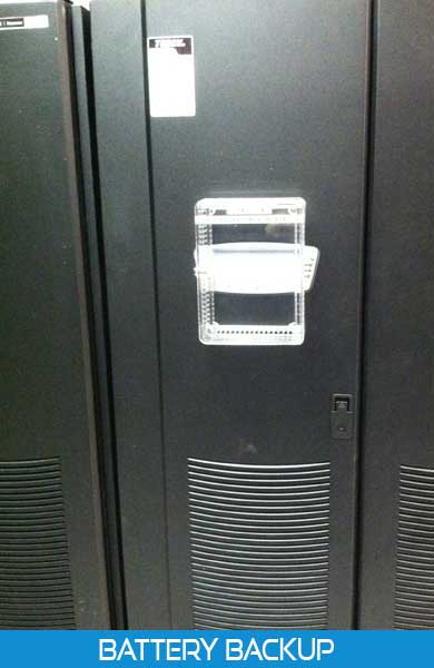 The data center utilizes four high capacity battery backup units with a combined capacity of 490KVA.